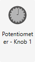 This control works like a potentiometer, turning the knob from min rotation to max rotation, the output value changes from Minimun to maximun, using the step value in each turn step.