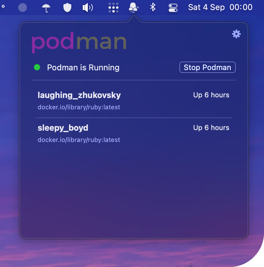 "Podman for macOS" is a macOS frontend for Podman. It can be used to start and stop both the Podman Machine and its running containers. In case a Podman Machine is not yet setup, the application can provision and start it automatically. Additionally, users may set it to automatically start and bring the machine up during login.