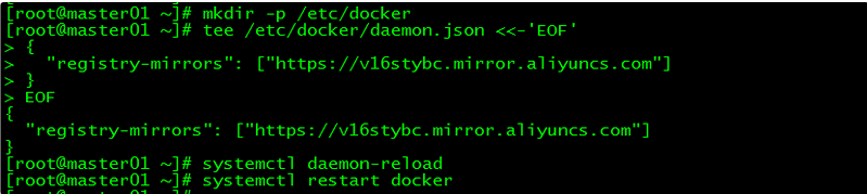 [root@master01 ~]# tee /etc/docker/daemon.json <<-'EOF'
