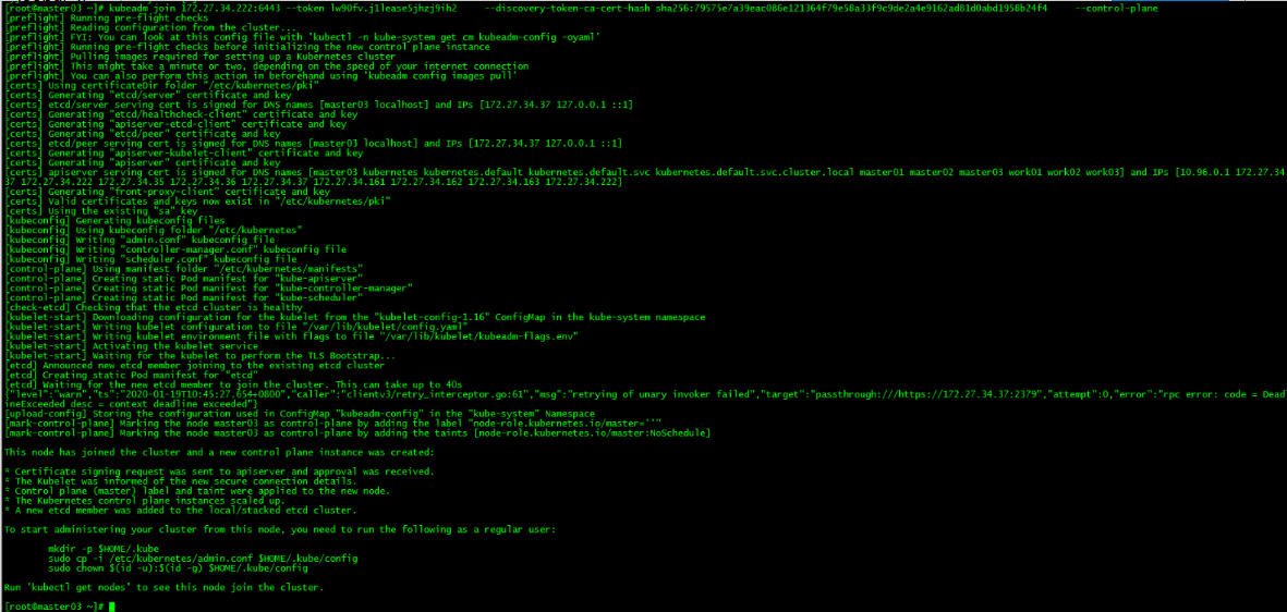| master03 | 7.6.1810 | 172.27.34.37 | 18.09.9 | v0.11.0 | / | 4C4G | control plane |