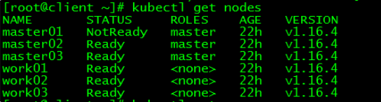 work03 Ready <none> 22h v1.16.4master01状态为NotReady