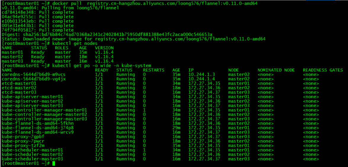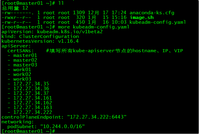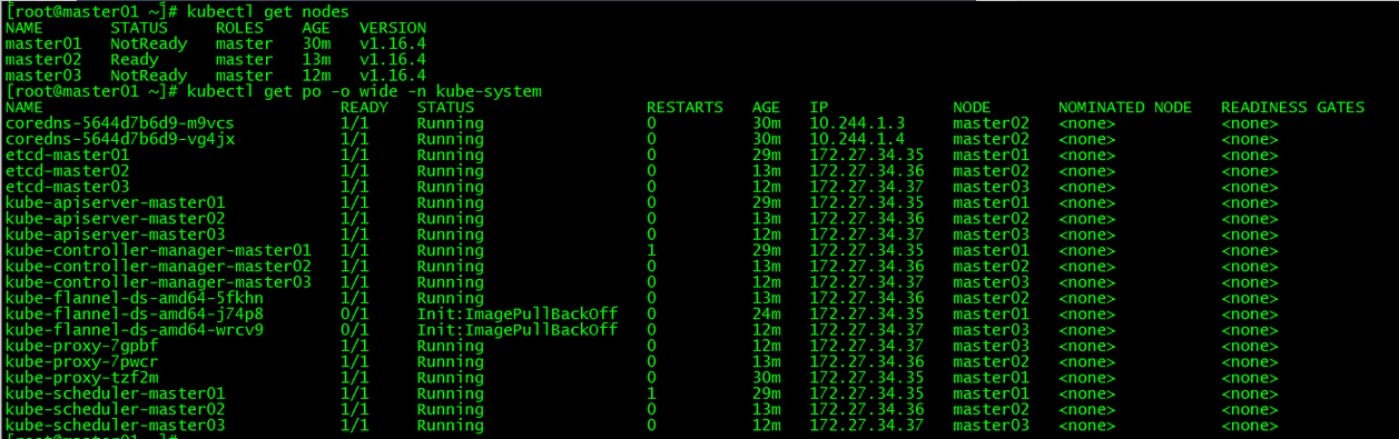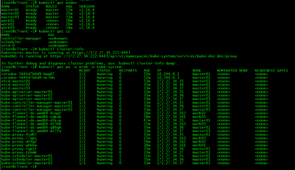 | master01 | v1.16.4 | v1.16.4 | v1.16.4 | kubectl选装 |