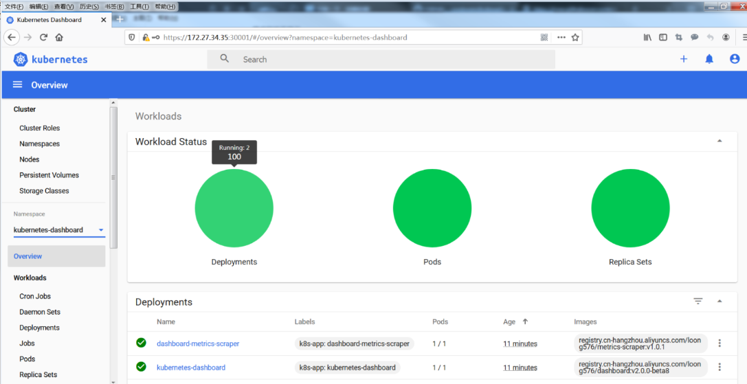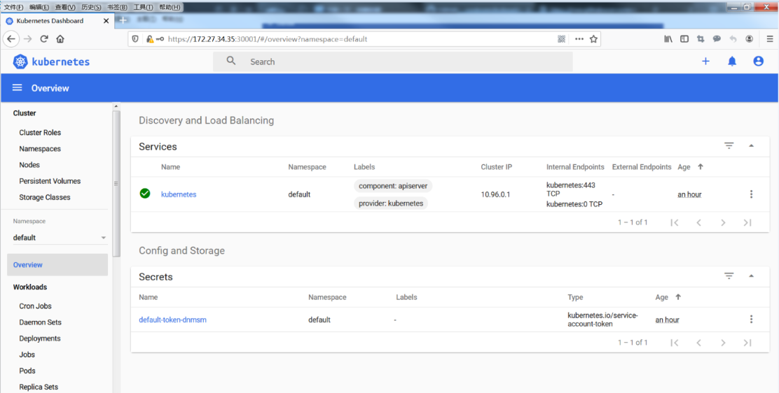 | master01 | 7.6.1810 | 172.27.34.35 | 18.09.9 | v0.11.0 | / | 4C4G | control plane |