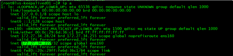 inet 172.27.34.222/32 scope global ens160发现vip运行在lvs-keepalived01上