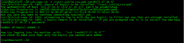 [root@master01 ~]# ssh-copy-id -i /root/.ssh/id_rsa.pub [email protected][root@master01 ~]# ssh 172.27.34.36