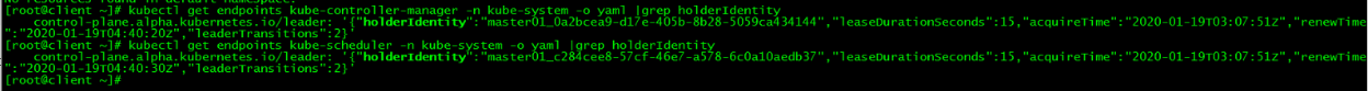 [root@client ~]# kubectl get endpoints kube-scheduler -n kube-system -o yaml |grep holderIdentity