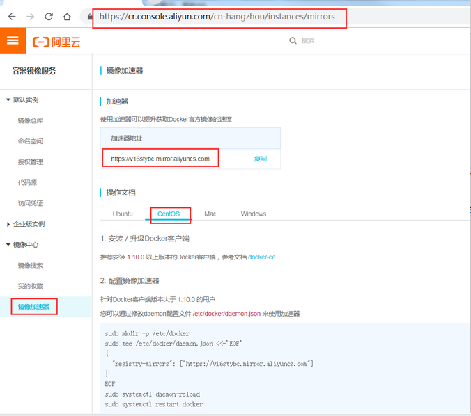 [root@master01 ~]# systemctl enable docker[root@master01 ~]# yum -y install bash-completion[root@master01 ~]# source /etc/profile.d/bash_completion.sh由于Docker Hub的服务器在国外,下载镜像会比较慢,可以配置镜像加速器。主要的加速器有:Docker官方提供的中国registry mirror、阿里云加速器、DaoCloud 加速器,本文以阿里加速器配置为例。