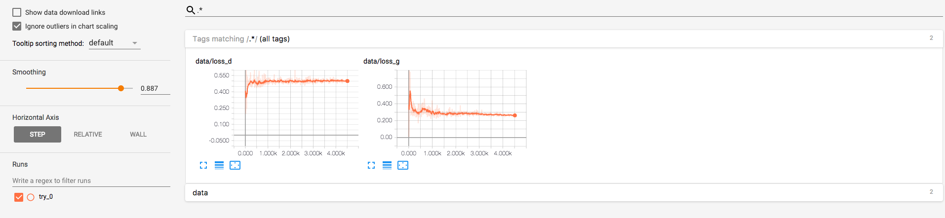 $ tensorboard --logdir repo/tensorboard --port 8888